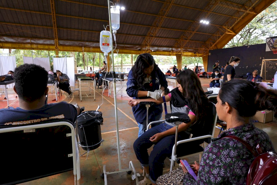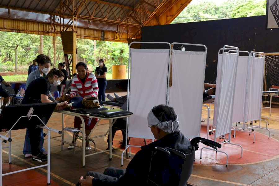 A Escola Municipal Indígena Tengatui Marangatu, localizada na Aldeia Jaguapiru, na Reserva Indígena de Dourados, passou a funcionar como um verdadeiro hospital de campanha no enfrentamento à chikungunya. A estrutura foi montada na quadra da unidade e iniciou os atendimentos nesta terça-feira (17), diante do avanço da doença na Reserva Indígena.