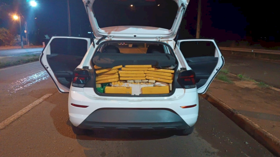 Após deixar o carro, ele acabou confessando que transportava drogas no porta-malas e durante vistoria, foi encontrada grande quantidade de maconha em tabletes ocupando todo o compartimento traseiro. Além de porções do entorpecente escondidas no assoalho atrás do banco do motorista.