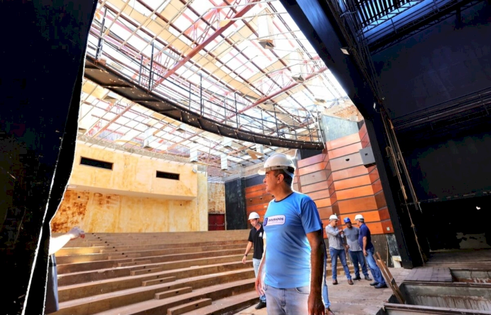 Reforma do Teatro Municipal avança e prefeito vistoria obras em Dourados