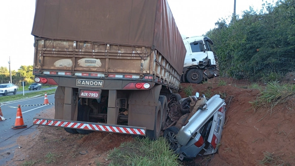 O acidente que ocorreu nesta manhã (11), na rodovia MS-134, entre Batayporã e Nova Andradina, revelou uma cena ainda mais trágica durante os trabalhos de resgate. A colisão envolveu uma carreta e um VW/Santana, com placas de Ribeirão Preto (SP).