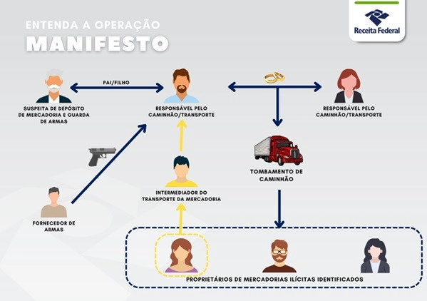 A Receita Federal e a PF (Polícia Federal) deflagraram na manhã desta quinta-feira (28/8), a operação "Manifesto", com objetivo de desarticular grupo especializado no contrabando e no descaminho de produtos de origem paraguaia.