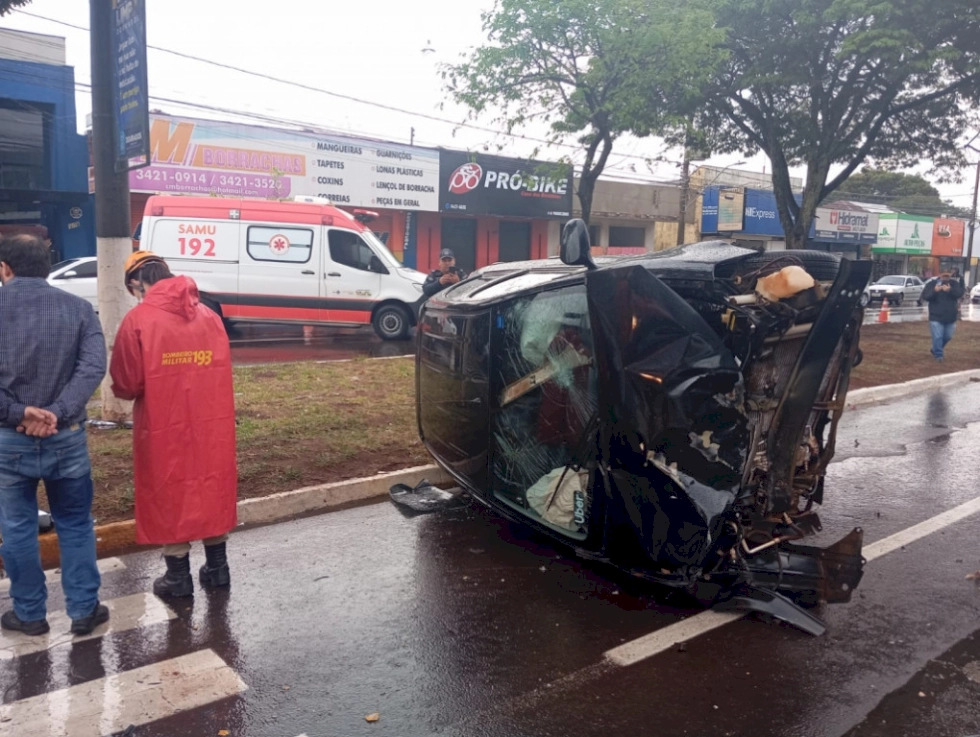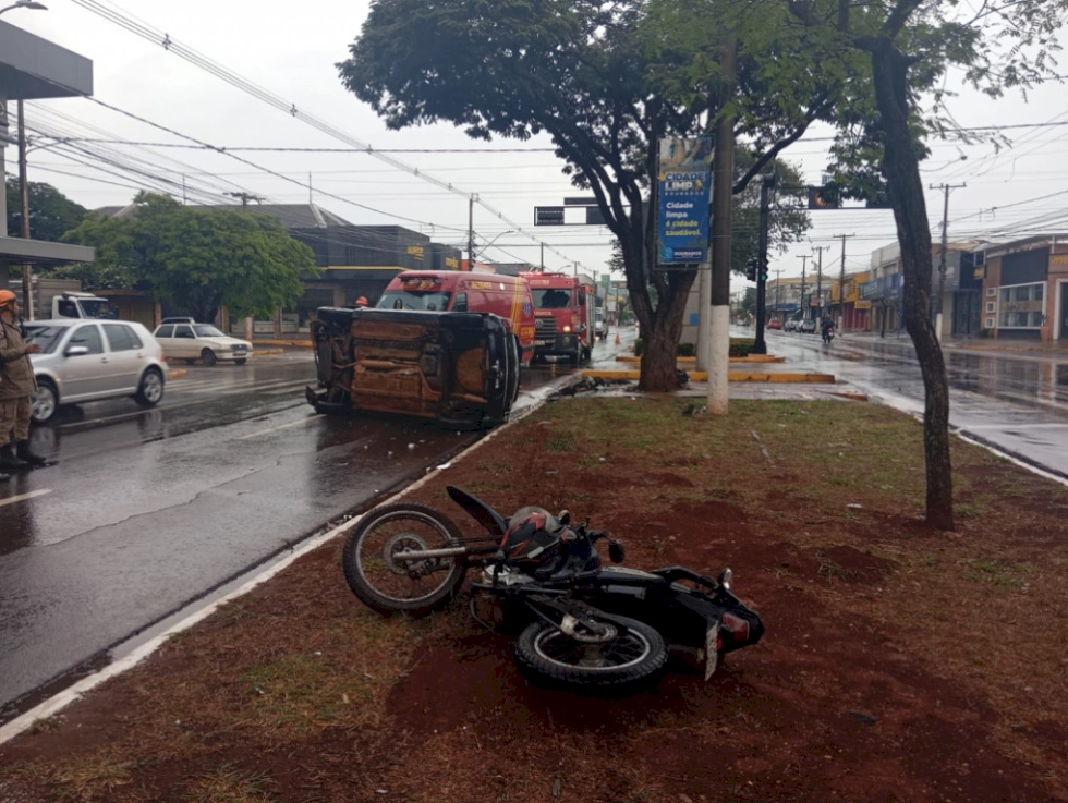 Mulher ficou gravemente ferida após acidente envolvendo um veículo de aplicativo e uma motocicleta na manhã deste sábado (6/9), em Dourados. A colisão ocorreu no cruzamento da Avenida Marcelino Pires com a Rua Ediberto Celestino de Oliveira.