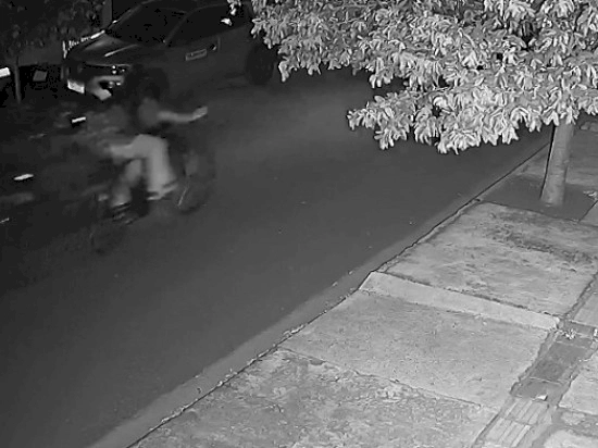 Imagens de câmeras de segurança que circulam em grupos de aplicativo de mensagem mostram o motoentregador peseguindo uma ciclista, conforme o vídeo acima.