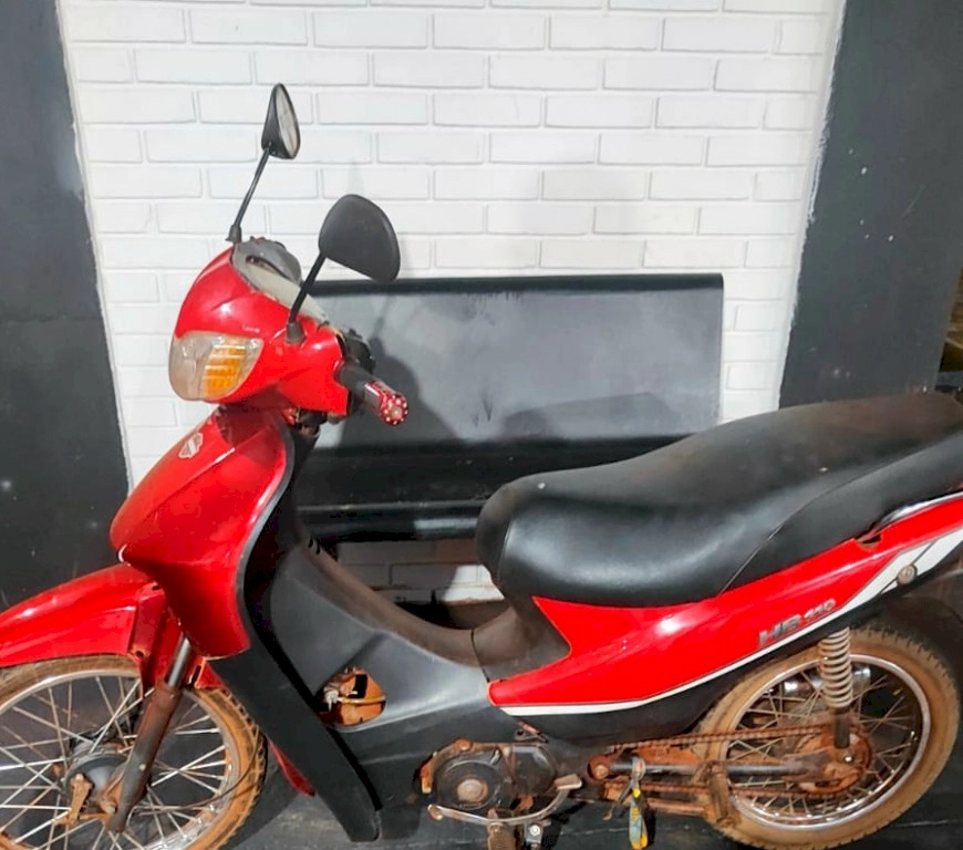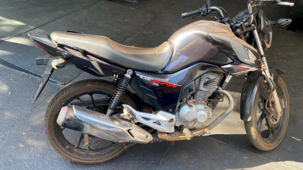 Durante a verificação de um veículo abandonado em via pública, os agentes identificaram a motocicleta Honda Fan 160, de cor cinza, sem placa. Por meio da consulta do número do chassi no sistema policial, foi constatado que o registro de furto.