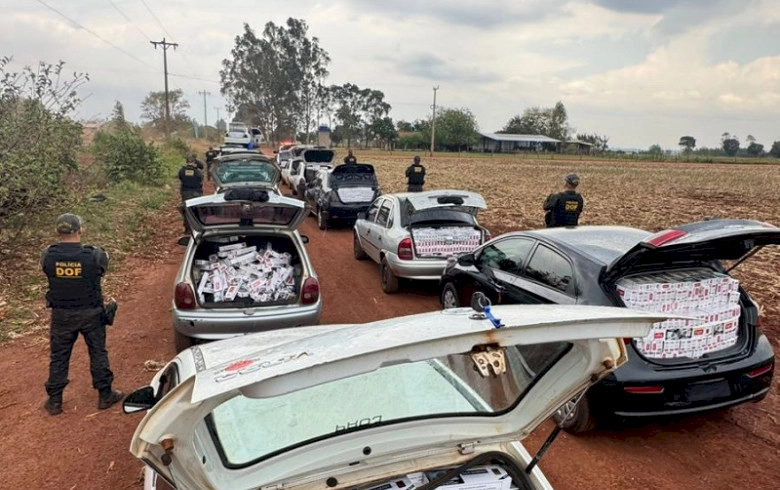 Policiais do DOF (Departamento de Operações de Fronteira) apreenderam, nesta segunda-feira (6), no Assentamento Itamarati, em Ponta Porã, 17 veículos carregados com materiais de contrabando e descaminho. Na ação, 14 pessoas — sendo 12 homens e duas mulheres — foram presas em flagrante.