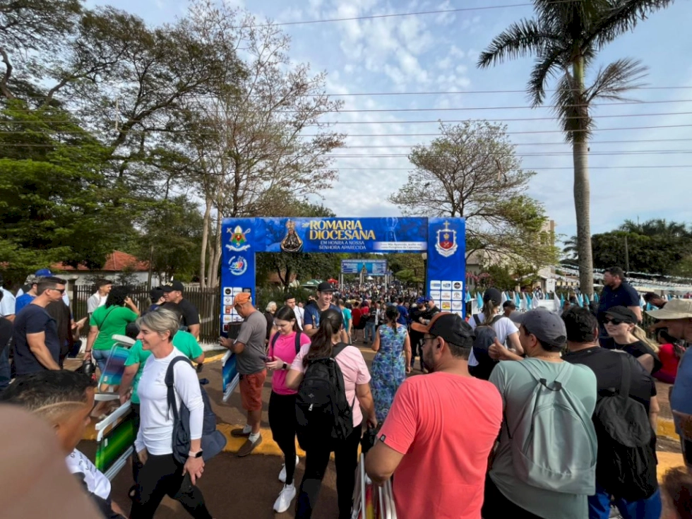 Pelo menos 60 mil pessoas participam da manhã deste domingo (12) da 26ª Romaria Diocesana em honra a Nossa Senhora Aparecida, em Dourados. As celebrações pelo Dia da Padroeira do Brasil ocorrem no Santuário de Nossa Senhora Aparecida, no distrito de Vila São Pedro, na margem da BR-163.