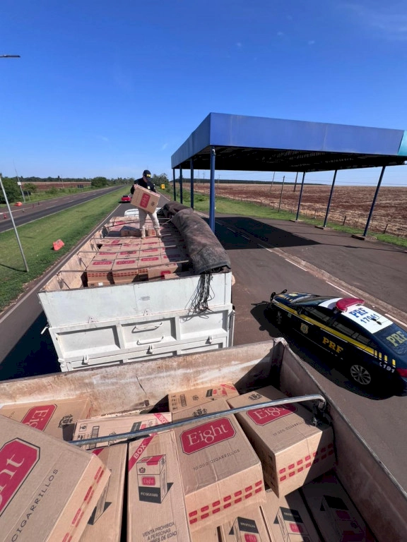 Durante uma fiscalização de rotina realizada nesta quarta-feira (12/11), na BR-163, em Caarapó, agentes da PRF (Polícia Rodoviária Federal) apreenderam uma carreta carregada com cigarros contrabandeados do Paraguai.