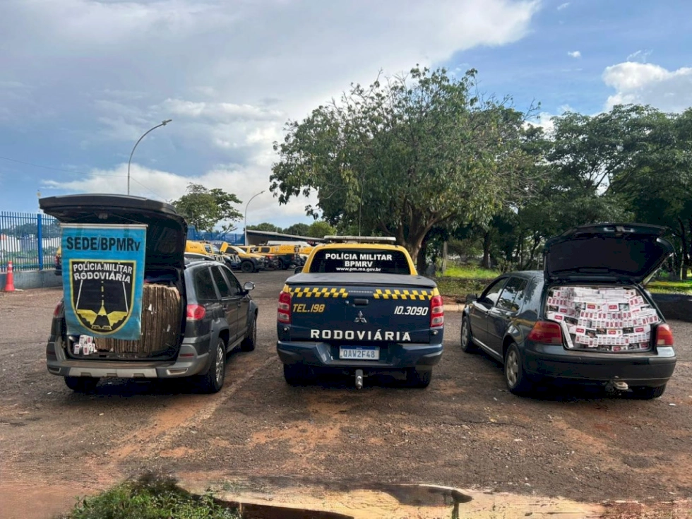 A PMR (Polícia Militar Rodoviária) apreendeu duas cargas de cigarros contrabandeados durante ação desencadeada após denúncia anônima repassada via C3/198, informando que veículos Palio Weekend e um Golf, todos de cor escura, estariam transportando grandes quantidades de mercadorias ilícitas com destino a Campo Grande.
