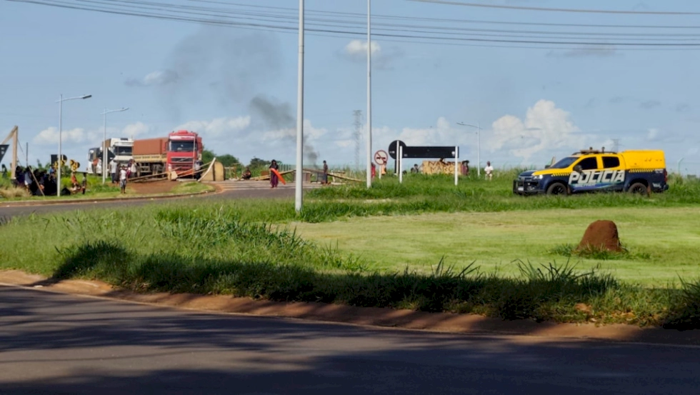 O anel viário de Dourados no trecho que liga a BR-463 à MS-156 e à BR-163, continua bloqueado por indígenas Guarani-Kaiowá em protesto contra o marco temporal. A rodovia foi fechada na tarde desta quinta-feira (11/12) com pedaços de madeira e pneus.