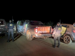 Segundo a ocorrência, os policiais realizavam patrulhamento pela Estrada do Suez, zona rural do município, quando receberam a informação de que dois carros estariam trafegando de forma suspeita, sendo que um deles aparentava estar sendo guinchado.