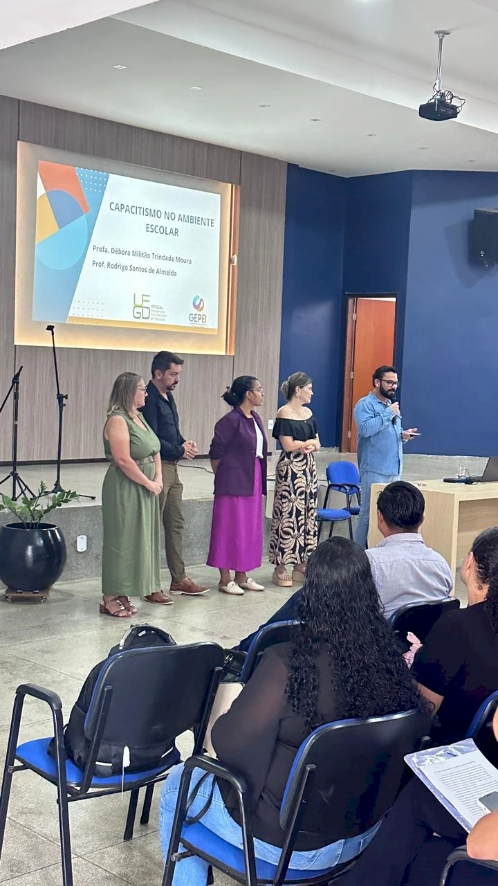Com o tema “Capacitismo no Ambiente Escolar”, a formação, ministrada na sede do Sindicato Municipal dos Trabalhadores em Educação (Simted), contou com ampla adesão dos profissionais da rede, consolidando um momento de aprendizado, troca de experiências e interação. A atividade foi conduzida pela professora Débora Militão Trindade Moura, com a participação do professor Rodrigo Santos de Almeida, ambos doutorandos do Programa de Pós-Graduação em Educação da Universidade Federal da Grande Dourados (UFGD).