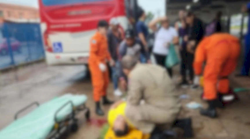 Passageiro sofre fratura exposta após ser atropelado por ônibus em terminal