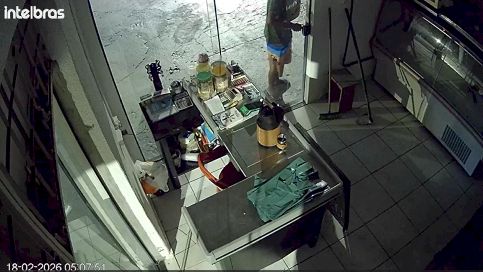 A polícia divulgou nesta quinta-feira (19/2), vídeo do momento em que Lucas Matheus Santos de Carvalho, de 27 anos, o “Microfone”, arromba a porta de um açougue localizado no cruzamento das ruas Cafelândia e Josué Garcia, no Jardim Água Boa, em Dourados, na madrugada desta quarta (18/2).