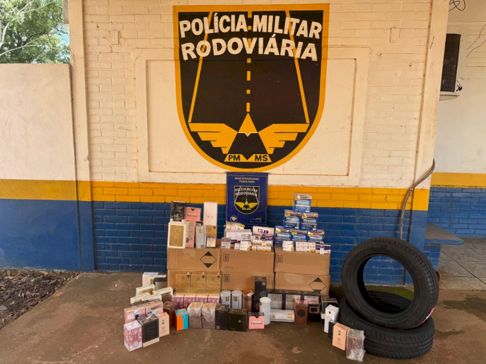 Durante fiscalização na MS-164, em Ponta Porã, a PMR (Polícia Militar Rodoviária) apreendeu neste domingo (22/2), mais de R$ 500 mil em mercadorias do Paraguai como remédios emagrecedores, perfumes, pneus e outros.