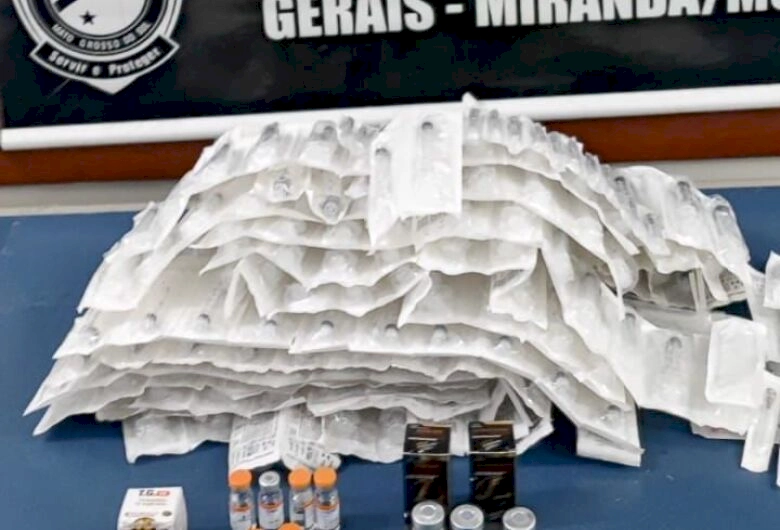 No local foram apreendidos 4 frascos de medicamento Lipoless, 2 de TG, 3 frascos de substância esteroide anabolizante Drostanolana, além de agulhas e seringas. Entrevistado. O homem confirmou a propriedade dos medicamentos, assumindo que estava realizando a comercialização.