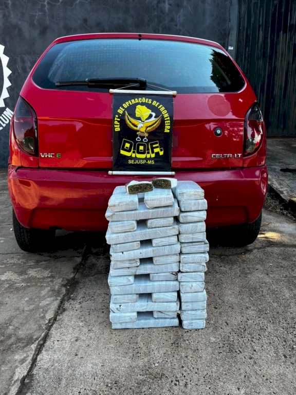 Policiais do DOF (Departamento de Operações de Fronteira) prenderam nesta terça-feira (21/4), em Coronel Sapucaia, homem de 30 anos com 64 quilos de maconha que eram transportados em um veículo Chevrolet Celta.